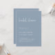 Dessa eleganter, dammiga blå och vita inbjudningskort för möhippa är enkla och minimalistiska men ändå mycket snyggtar på grund av det moderna handskrivna skript och den rena layouten.