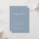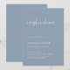 Dessa inbjudningar till elegant, dammig blått och vitt par-möhippa är enkla och minimalistiska men ändå mycket snyggt på grund av det moderna handskrivna skript och den rena layouten.