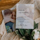 De här elegantens fotobröllopsinbjudningar är enkla och minimalistiska men ändå mycket snyggt på grund av det moderna handskrivna skript och den rena layouten. Lägg till två foton, ett på framsidan med ett rent överlägg och ett på baksidan.