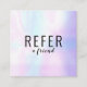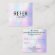 Enkel, modern, professionell referenskort med en holografisk, regnbågsgradient, iridiserande, pärlbakgrund. Perfekt för proffs, inklusive spa, salonger, sminkartister, frisörer, kosmetologer, hudspecialister, skönhetsspecialister, nagelsalongbutiker och boutiquer. Du kan anpassa den genom att lägga till dina kontaktuppgifter och ett speciellt rabatterbjudande på baksidan. Designad av Thisisnotme©