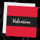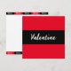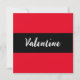 Ett enkelt och stilrent Alla hjärtans dag-kort i rött, svart och vitt. Ordet 'Valentine' visas över designen i elegant typsnitt. Baksidan av kortet har attraktiva ramar vid övre och nedre kanterna, med resten tomt för ditt eget personliga meddelande.