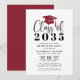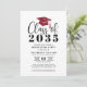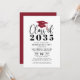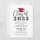 En snygg och modern inbjudan till examensfest med årskurs, som "Class of 2026" i stor, fet text högst upp med en anpassningsbar studentmössa-ikon ovanför. Under året visas alla evenemangsuppgifter snyggt i enkla moderna teckensnitt, inklusive examenstagets namn, datum, tid och plats för firandet.