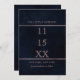 Denna eleganta och enkla "save the date"-kort är en charmig och unik design för ditt bröllopsevenemang. Den har en falsk tryckt roséguld foliegräns som innesluter en stor markering av datumet i matchande roséguld-typografi ovanpå en konstnärlig och modern mörkblå akvarell-målad bakgrund. Den är söt, chic, minimalistisk och trendig!