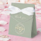 Enkel, elegant, minimalistisk, modern salviagrön tackpresentlåda för bröllop med monogram och gul repsnöre hjärta.