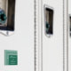 Den enkla moderna chicen skriver bröllop magnet "SPARA OUR DATE" för brider som håller på att hålla sina ceremonier i modern grönt. Alla är inställda på modernt vitt teckensnitt med initialer på sidan.