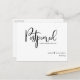 Måste skjuta upp din Bröllop? inga problem, låt familj och vänner få veta hur planerna har förändrats med denna elegant och enkelt Postponement Postcard. Framsidan med ord Postponed i modern tid hade en skriftlig typografi. Gå tillbaka till meddelandets område och känn dig fri att ändra meddelandet till kostym efter dina behov. Möjlighet att få meddelande från par till vänner och familj eller från föräldrar till sina gäster. Handskrivna typografidetaljer i baksidan också. Modern elegant känner sig. Praktiskt vykort, mindre slösa, mindre krångel. Finns även på kortet stil.