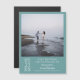Det här magnetiska kortet är ett underbart sätt att låta dina vänner och familj veta att spara datumet för ditt kommande bröllop. Har en enkel, modern, konstnärlig, minimalistisk design med ett fyrkantigt foto på en teal, turkos eller akvatisk färgad med vit text. Datumet visas med varje dag månad och år på sin egen rad, vilket ge detta kort till en unik contemporary.
