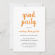 Enkel inbjudan till studentfest med en klassisk design med "grad party" och student namn i ett tjockt orange-skript som ger en vit bakgrund. Baksidan är solid orange. En inbjudan till elegant med ett modernt minimalistiskt flust för en flicka student.