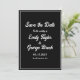 Gör ett statement med denna tidlösa och klassiska svart-vita bröllopsinbjudan. Den djärva vita typografin på en svart bakgrund skapar en slående kontrast och en unik look. Perfekt för bröllop, förlovningar och andra speciella tillfällen, kommer denna inbjudan att göra ett bestående intryck. Den enkla men eleganta designen kommer säkert att sticka ut bland de andra.