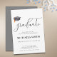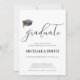 Modern och enkel inbjudan från studenten med en illustration av en svart studentmössa och elegant. Illustrerad och designad av Patricia Alvarez.