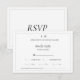 Svarskort från den moderna, moderna, moderna, Elegant Chic Svarskort från Svarta vita Gräns-Bröllop OSA. Den här eleganten, det moderna, klassiska och klassiska bröllop-svarskortet har en enkel svart och vit, minimalistisk textbaserad utformning baserad på contemporary, med en klassisk gräns bild ram. Ditt inledande eller monogram gör inbjudan unik för dig och följer med utformningen av dina matchande inbjudningar. Ditt namn på svarskortet ser till att dina gäster får tillbaka kortet till dig. Om du vill skriva in &-symbolen som ska visas mellan initialer i stället för silver grått-lodrät. Gräns är klassiskt silver grått färg, medan texten är svart på vit mark. Utrymme för det antal gäster som deltar eller avtar, liksom deras måltider och utrymme för kostrestriktioner som kan tillkomma. Inbjudningar om matrestriktioner. Allt fält är enkelt att ändra för dina unika behov i bröllop. Särskilt lämpligt för par som föredrar ett modernt industriellt bröllop-vibe eller en plats för loft. För snabba svar har motsatsen "OSA" på baksidan för att subtilt hjälpa dina gäster att hitta ditt kort bland deras pappersarbete. Hjälp dem, hjälp dig. Steg för steg inspirationsserien finns endast på Zazzle på zazzle.com/store/KrisHarty, designad av internationell designer, Kris Harty. © 2023 Kris Harty Step by Step Inspiration