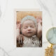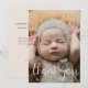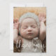 Skicka ett speciellt tack till familj och vänner med det här födelsepromemorian Fotokort. Den enkla designen har ett foto på framsidan med Tack i en skripttypografi.. Baksidan innehåller alla viktiga detaljer som baby namn, födelsedatum, födelsestatus och ett tackmeddelande från föräldrarna.