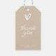 Lägg till en personlig touch på din bröllopsfest med denna eleganta samling Tacksamt-taggen! Varje tagg har en mjuk beige bakgrund med ett charmigt handritat hjärta i det övre högra hörnet för en enkel men stilren look. Mitten på varje tagg ger utrymme för anpassad text, så att du kan lägga till ett personligt meddelande eller gästens namn. Perfekt för att knyta till presenter eller föräranden, är dessa taggar ett enkelt sätt att visa uppskattning för dina gäster. Välj att få dem tryckta för en klassisk känsla eller skicka digitalt för en modern twist.