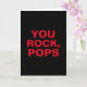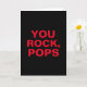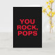 Enkel, modern och rakt på sak, detta mångsidiga kort till din Pappa kan användas som fars dag-kort, födelsedagskort, till pappas pension eller till de flesta speciella tillfällen för att fira din far. Det har fet röd typografi på en kontrasterande svart bakgrund med budskapet "YOU ROCK, POPS" på utsidan. En textmall är inkluderad om du vill anpassa namnet/smamnet du använder för din Pappa, t.ex. Pappa, Papa, Far, etc. Insidan är medvetet lämnad tom för att rymma det personliga meddelande du vill inkludera.