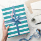 Enkel modern turkos Vitstripe-minimalistisk Presentpapper