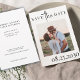 Minimalistisk chic-typografi av trendig, skript svart och vitt bröllop spara datum-kort med anpassningsbar-foto och text. ++++++++++ Lämpligt för en modern rostertid oavsett säsong bröllop.