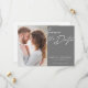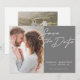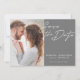 Elegant och modern design har ett typografiskt skript Spara datum och ditt favoritfoto mot en förändrad grått-bakgrund. Jag vill bara tillkännage ert kommande bröllop på ett modernt, minimalistiskt sätt. Anpassa viktiga detaljer och det bästa valet av bild.