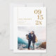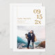Modern minimalistisk typografi, med ett pars foto och fet bröllop-datum i färg redigerbara färg, chic och enkel. Underbara fotot sparar datumkort för moderna bröllop och andra evenemang. Välj "Klicka för att anpassa ytterligare" i avsnittet "Anpassa den här mallen" för att justera fotots position.