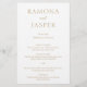 Elegant falsk guld budget vigselmeny folder (tryckt på detta skrivarpapper) med en enkel och minimalistisk design. En klassisk layout med era namn i stor bokstav för ett modernt twist på denna traditionella stil. En vigselmeny som är perfekt för ett formellt bröllop.