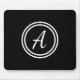 Musmattan med svart bakgrund och vit anpassningsbar i monogram första gången.