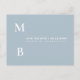 Enkel monogram Isig Blue Bröllop spara datum Vykort