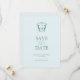 Meddela om din förlovning med detta moderna "save the date"-kort. Det har en blandning av klassisk och script-typografi i turkos över en enfärgad blekblå bakgrund. Fyll brudens och brudgummens monogram i mitten av en vapensköld. Alla färger kan anpassas för att passa din bröllomspalett. Använd mallfälten för att anpassa med ditt namn och bröllomsdatum. Välj mellan en mängd olika kvalitetskortpapper. Min favorit för detta är pärlskimrande. Blanda och matcha med många av mina designer för att skapa ditt anpassade bröllomstema. En minimalistisk men tropisk design för bröllop och förlovningsannonseringar. För att se den matchande bröllomspappersserien, besök www.zazzle.com/dotellabelle