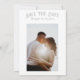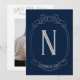 Denna minimalistiska och chic save the date-inbjudan är det perfekta sättet att tillkännage din kommande brölloppsdag. Framsidan av kortet har en vacker monogram-krön med en båge högst upp, och baksidan av kortet kan anpassas med ditt foto och detaljer om bröllopet. Denna inbjudan kommer säkert att imponera på dina gäster och få dem att bli glada för din stora dag.