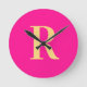 Enkel monogrammologisk modern Shock rosa Rund Klocka