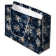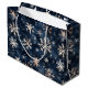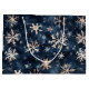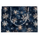 Denna enkla mörk blått med snöflingor mönster är perfekt för din stora helgdag-påse. AI-assisterad grafik som köpts med kommersiell använda. Bild: FreyasDigitalCrafts