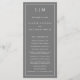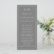 Modern Bröllopsprogram med en enkel men ändå elegant utformning med traditionell layout. Ditt två brev-monogram ligger överst tillsammans med dina detaljer omgivna av ett tunt gräns. All inslag är vit över en medelstor grått-bakgrund och kan ändras i designredigeringsverktyget i verktyg. En minimalistisk utformning med en klassisk känsla som är underbar för ett formellt bröllop.