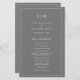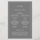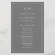 Ett enkelt Bröllopsprogram med en modern utformning av eleganten med två brev-monogram överst och dina detaljer omgivna av ett tunt gräns. All text är vit över en medelstor grått-bakgrund och kan ändras i designredigeringsverktyget verktyg. Framsidan har din ceremoni och baksidan har din bröllopsfest och tack för ditt budskap. En chic och snyggt som är underbar för ett minimalistiskt par. Dessa bröllopsprogram i billigten trycks på lakan av papper för ett budgetvänligt alternativ.