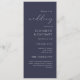 Det här enkla elegant bröllop-programmet har vit text som är justerad mot högernas marginal på en mörkens blå bakgrund. Ord "bröllop" visas i vit handskriftsgrafi, med den återstående texten i serif och italic typsnitt.