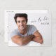 Här är ett enkelt Spara vykortet Date Studenten som har stor inverkan. Mörk grått-skript på den främre högerna parar upp med ditt eget foto- och anpassningsbar-datum. På baksidan finns det gott om text fält för att få fram din information. Modern, trendig och enkel att anpassa!