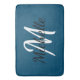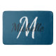 Baddräksmatta med mörkblå bakgrund och vit anpassad monogram första bokstav och förnamn.