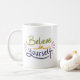 Starta din dag med ökad motivation med den här upplyftande "Tro på dig själv" mugg. Mugg har en vacker, handskriven design i grönt, guld och lila med färgstarka accentblommor och är en varsam påminnelse om att förbli självsäker och positiv. Det är perfekt för ditt morgonkaffe, lugnande te eller något glas som underblåser dina drömmar. Den pulserande designen skrivs ut på båda sidor och skapar den som ett underbart val för både lämnat och höger-handanvändare.