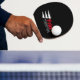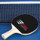 En enkel och snyggt design på en svart bord-tennis-paddel... för att anpassa dig med din egen namn.