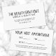 Det här enkla kortet för avtalade tider med snyggt har en ren svart och vit design med all text i modernt sans serif typsnitt. Layouten är minimalistisk och ger en professionell som är lätt att läsa och som är visuellt tilltalande. All din kontaktinformation - mobilt nummer, e-postadress, adress eller social-mediehandtag - visas tydligt på framsidan. Med baksidan får du plats för skrivan när det gäller datum, tid och möte detaljer, vilket ger praktiska möjligheter att schemalägga vardagen. Anpassadet är helt och hållet att du kan uppdatera texten så att den passar ditt varumärke. Ett elegant val av professionell för salonger, vackra professioneller och kreativ som vill ha ett minimalt men otrevligt avtalskort.