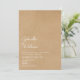 Enkel naturlig manuskript rustic kraft bröllopsinbjudan med en klassisk design som presenterar det lyckliga parets namn i ett elegant manuskript ovanför de speciella bröllopsdetaljerna på en naturlig rustic kraft bakgrund. Baksidan visar ert speciella foto. Designad av Thisisnotme