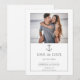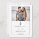 Skicka gästerna detta moderna och eleganta Enkla nautiska ankarfoto Spara datum. Tillkännagivandets design har en minimal layout och samtida typsnitt prydda med ett ankar. Lägg till ditt favoritfoto och bröllopsdatum för att anpassa.