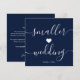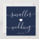 Detta är ett enkelt mörkblått och vitt skript för mindre bröllopskort för att informera dina gäster om att ni har beslutat att nedskala ert bröllop, ha ett mindre bröllop, mikrobröllop, intimt bröllop på grund av vissa omständigheter.