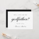 Enkel och elegant fadderförslags kort med "vill du vara min fadder" svart skript typografi. Detta fadderförslag har en minimal och modern stil i svart och vitt, med en solid svart redigerbar färgbakgrund på kortet.