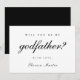 En enkel och elegant fadersförslagsidé med "vill du vara min fadder" svart typsnitt. Denna fadderförfrågan har en minimalistisk och modern stil i svart och vitt, med en enfärgad svart redigerbar baksida på kortet.