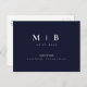 Enkel och elegant Monogram marin och vit Spara dat Vykort