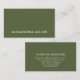 Affärskortets utformning är ett typexempel på sofistikering och elegans. På kortets framsida finns ditt namn i ett enkelt och snyggt vitt teckensnitt, placerat i den nedre tredjedelen av kortet mot en solid oliv grönt bakgrund. Kortets baksida innehåller titel- och kontaktinformation, även i vanligt vitt teckensnitt på oliv grönt bakgrund. Resultatet är en ren och modern utformning som utlämnar förtroende och professionalism.