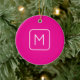 Enkel och modern monogramstart | Rosa och vit Julgransprydnad Keramik