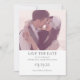 Det här enkla och moderna Spara datumkortet har ett fotoöverordnat avsnitt och anger tonen för årets händelse! Låt fotot tala för sig självt och berätta om din bröllop-dejt på ett modernt och elegant sätt med detta kort. Alla delar av kortet är redigerbara, inklusive fotot. Du kan redigera dina egna detaljer genom att klicka på knappen Anpassa till bildens höger.