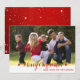 Tittar du ett enkelt och snabbt helgdag-kort? Du kan snabbt anpassa det här snyggten med ditt foto och din familj namn. Du kommer att bli klar om några minuter! Kortet har ett rött "God jul" och ditt meddelande/din familj namn. Kortets baksida återgår till en röd bakgrund med stjärnor. Fira säsongen med det här vackra och lätta helgdag från Cherry Lane-designen! Fotography ©Storytree Studios, Stanford, CA. Byt ut exempelfotot mot ditt eget.