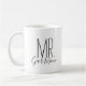 Söt minimalistisk handskriven typsnittsdesign personifierad med Mr. och ditt efternamn eller någon annan anpassad text. Klicka på Anpassa den för att ändra typsnitt och färger och lägg till din egen text och foton. Lägg till ett annat namn eller ett helt anpassat meddelande för att skapa den perfekta unika presenten till någon du älskar! Mr. och Mrs. personliga muggar med monogram är en bra presentidé för förlovade par eller personliga bröllopsgåvor till bruden och brudgummen.