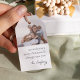 Lägg till en touch av elegans till din höjdpunktsfirande presentinslagning med detta personliga julfotoetikett från kollektionen Simple Wish av Redwood & Vine Design Co. Designad med ett diskret taupe-trädsmönster på baksidan och ren, minimalistisk typografi på framsidan har denna etikett utrymme för ett familjefoto och ett personligt julmeddelande. Perfekt för att försköna julklappar, högtidsfirande presentgåvor eller klientpresenter, den förenar modern enkelhet med festlig charm.