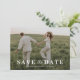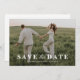 Eleganta bröllop sparar datum-kort, som visar ett fantastiskt tryckt foto, draperat i en vintage dammig överlagring. Den tidlösa sofistikeringen av en serif- och scriptfont stavas ut 'spara datum', era namn och datumet. Baksidan har ett annat anpassat foto och era webbinformationer.
